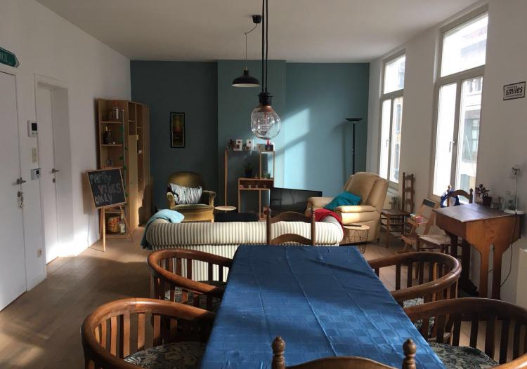 Weldra te huur: ruim appartement in het centrum van Antwerpen nabij winkels en op wandelafstand van het station Antwerpen-Centraal en van de bushalteplaats Roosevelt. Dicht bij de Antwerpse universiteit (Ufsia nu Universiteit Antwerpen), campus Sint Andries en andere Hoge Scholen. Op de derde verdieping zonder lift en dus weinig gemeenschappelijke kosten. Ruime living met eiken plankenvloer. Ingerichte nieuwe open keuken met toestellen (vitro keramische kookplaat, dampkap, oven, grote frigo, microgolf oven en vaatwasmachine), 2 slaapkamers waarvan één hele grote. Ingerichte badkamer met ligbad, douchescherm, lavabo geheel in retrostijl. Aluminium ramen met dubbele beglazing. CV op gas. Videofoon, enz. Beschikbaar vanaf 06/07/2020 en instapklaar. Momenteel te huur gesteld mét meubelen, ideaal voor één of meerdere studenten. Inlichtingen en bezoek via Immo Coppieters 0478/88.60.55