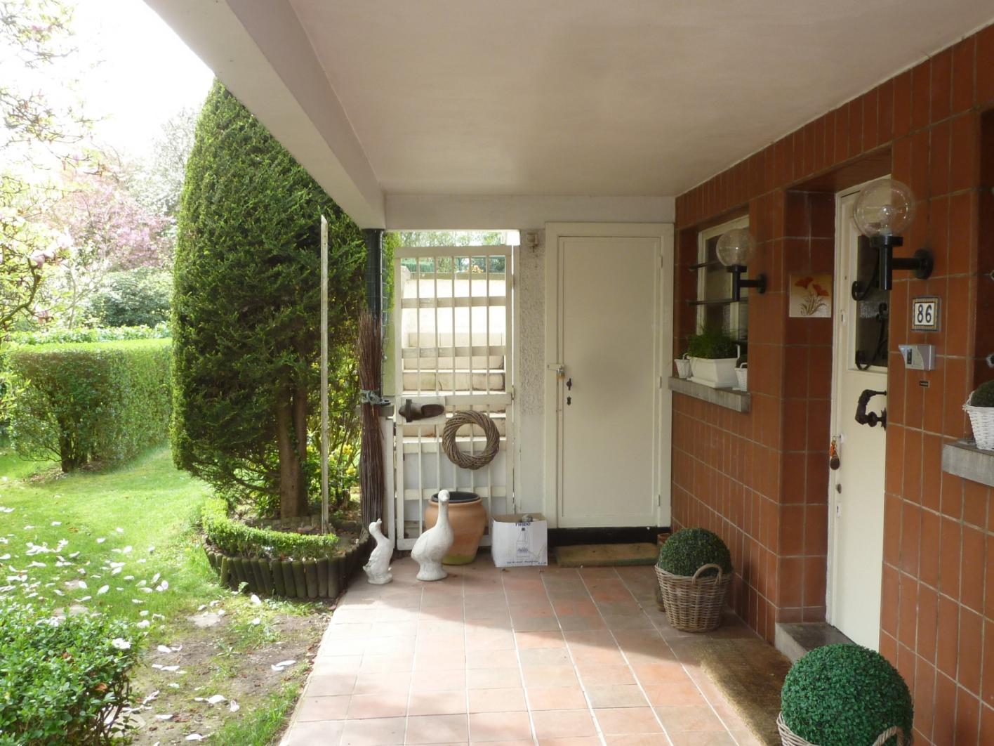 Prachtige modernistische villa in een aangelegd park. Bouwjaar 1932 van de befaamde architect Victor Bourgeois (tijdgenoot van Huib Hoste, Henry Van de Velde en Le Corbusier). Ideaal gelegen in een rustige enkel richting straat tussen het Scherdemaalpark en het Westland Shopping Center.  Unieke modernistische villa uit het interbellum met panoramisch raam in de living, grote lichtinval, groot terras en dakterras met uitstekende zon-oriëntatie (ZW) en magnifiek zicht op prachtig aangelegde authentieke tuin + privacy. Glkvl.: gr.inkomhal met mozaïekvloer, afz.WC+vestiaire. Wasplaats (indertijd conciërgerie). Garage met smeerput, berging, wijn- en CV-kelder (vernieuwde ketel op gas). 1ste vd.: gr. liv./eetk.+OH (planken vloer eik 8cm) + gr.(ontbijt)terras 12m² (or.ZO)+toegang naar tuin. Bureelruimte annexe aan de living.  Uitgeruste keuken met orig. doorgeefkasten.
